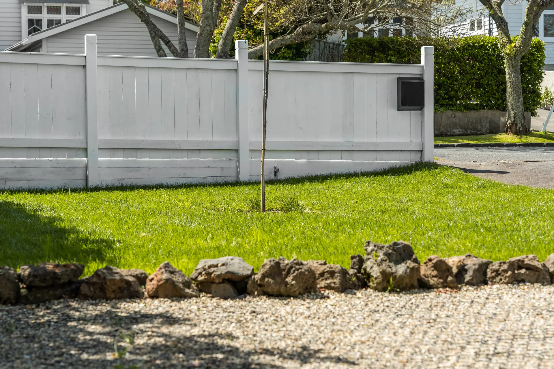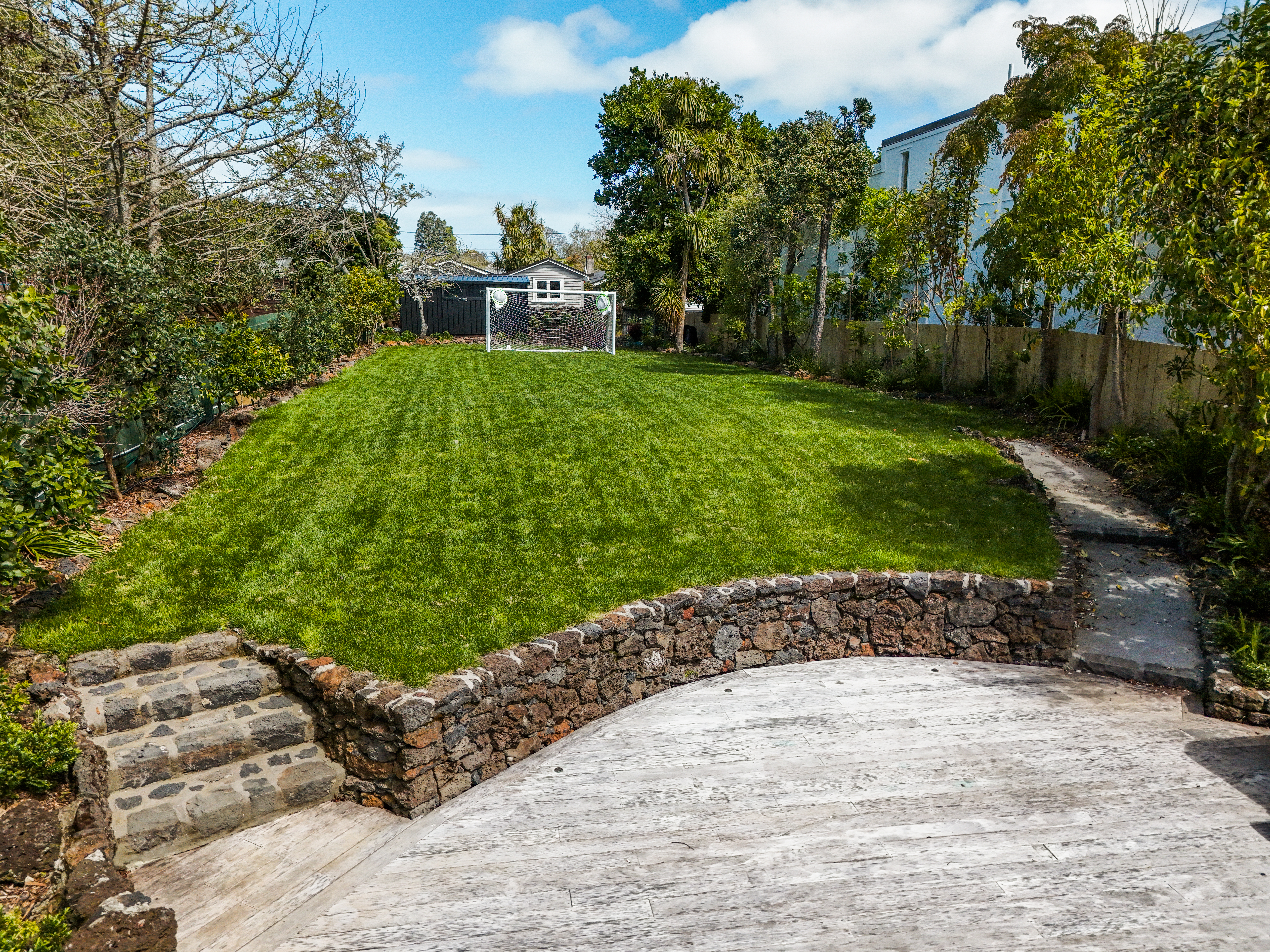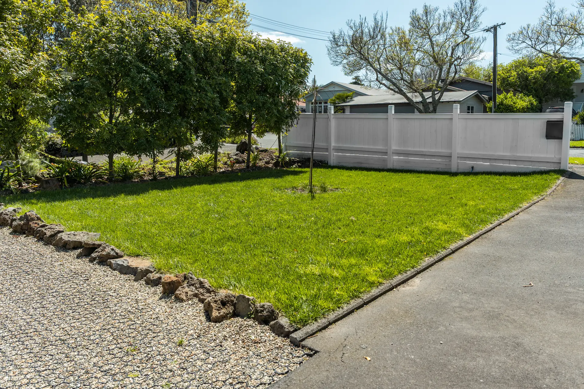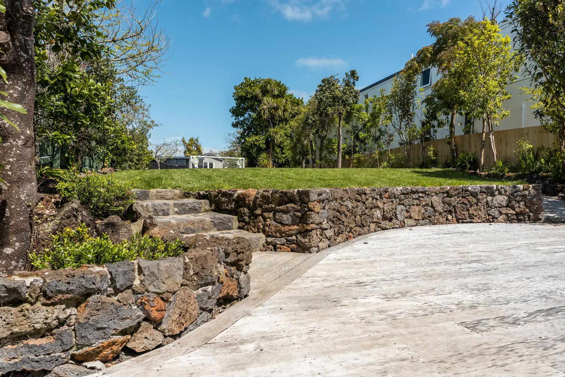 - Repurposing volcanic rocks for natural garden edging, plus new boundary fencing, a feature tree, and a fully integrated irrigation system
